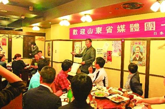 5、“山东媒体震后日本行考察团”受到了日本旅行社和华人华侨热情接待,中国驻大阪领事赵大为先生给考察团介绍中日友好情况。