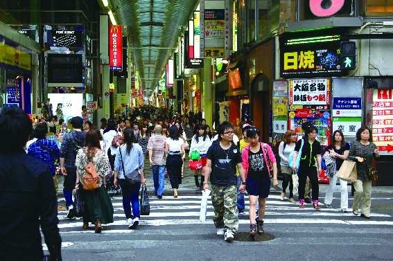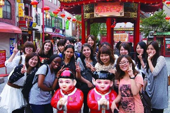 4、为振兴旅游市场,日本政府和相关协会组织推出了让利、降价等措施,纷纷邀请相关国家人员赴日交流。一帮来自世界各地的国际交换生在大阪市南京町开心地留影。