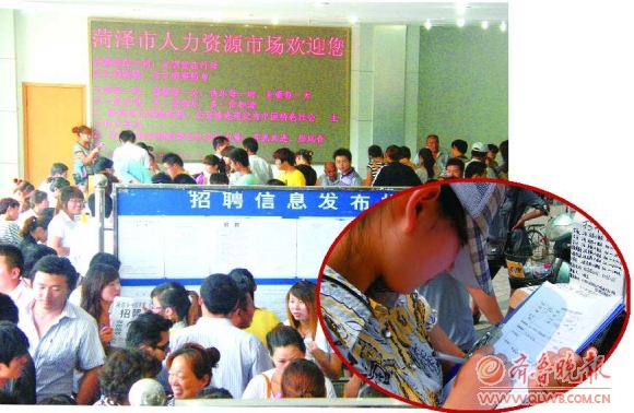 据菏泽市人力资源市场工作人员介绍,求职者中,学生身份的占到四成以上。本报见习记者 景佳 摄影报道