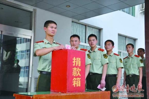 6月21日上午,武警菏泽支队举行了“慈心一日捐”活动。支队首长带头,官兵们纷纷慷慨解囊,短短十几分钟时间里,仅机关干部和直属单位官兵就捐款40000余元。
