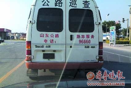 6月21日,一辆无牌公路巡查执法车行驶在大街上,本身是执法车辆却无牌上路让市民侧目。
