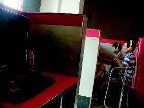 本报聊城6月21日讯(记者 王尚磊)21日中午,两名上三年级的小学生放学后,饿着肚子一头扎进水城中街西头的一家网吧,上网玩游戏(见左图),网吧违反规定,没看身份证,收钱就让他们开机上网。