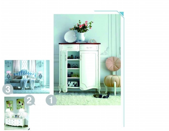 1、进门就给你清凉一震。白色的鞋柜上,精致的白色陶瓷盛器,海洋贝壳状的装饰盘,谁曾想到这样不经意的一个角落也能在家居饰品的装点下变得如此魔力非常?再加上小柜门上精致的雕花,欧式古典的桌腿设计,快回家吧,来充分感受夏日的柔情蜜意。