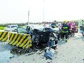 轿车撞护栏 司机被困