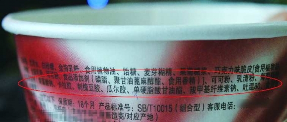 记者拿起一款3.5元的某知名品牌的盒装雪糕,发现在包装的配料表上印有20多种成分,而其中的食品添加剂有12种,包括磷脂、聚甘油蓖麻醇酯、食用香精、瓜尔胶等多种成分。在同冰柜内的某知名品牌的盒装雪糕的包装上也印着十余种食品添加剂。随后,记者又走访了济南路上多家其他大型超市发现,多款雪糕的配料表上都印有食品添加剂的字样,少的有5、6种食品添加剂,多的甚至达到了14种。