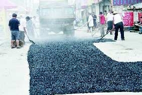 6月22日上午,市政公用事业管理局工作人员在整修红旗小学门前破旧的道路。据了解,该段路损坏已两年多,路面坑坑洼洼,雨雪天气更是泥泞不堪,这次整修将彻底改变以往路难走的现象。 本报记者 李军 摄影报道