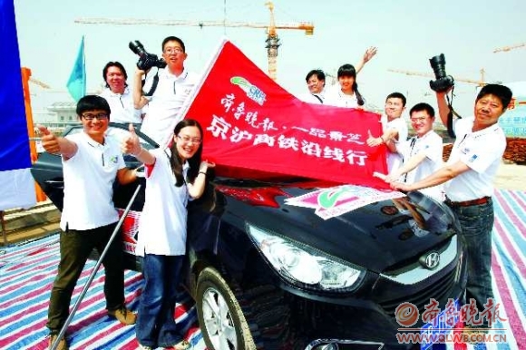本报作为多年来山东省发行量最大、广告收入最高、社会影响面最广的都市类报纸,一直关注京沪高铁的进程。为了让读者更加深入地了解京沪高铁以及京沪高铁开通后给沿线城市政治、经济、文化等带来的诸多影响,本报成立“高速中国·创领世界速度———齐鲁晚报·一品景芝京沪高铁沿线行”新闻报道小组,并于4月27日在济南西站举行了“京沪高铁沿线行”启动仪式。此后,本报新闻报道小组21名记者根据行程方案,分批自驾越野车从北京出发,沿途对廊坊、天津、沧州、德州、济南、泰安、曲阜、滕州、枣庄、徐州、宿州、蚌埠、定远、滁州、南京、镇江、丹阳、常州、无锡、苏州、昆山、上海等京沪高铁沿线城市进行分段式采访。