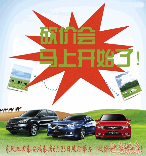 “砍价会”马上开始了,东风本田泰安鸿泰6月26日在展厅举办“砍价会”活动,优惠多少你说了算。打电话预约当天到店即可享受千元订金礼,到店有礼,试驾有礼,当天订、购新车还有机会畅享6重大礼。