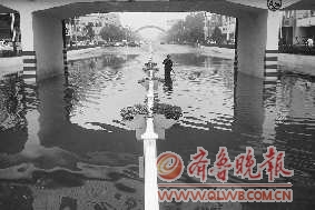 据清理积水的工作人员介绍,他们从凌晨3点多就过来清理了,当时这里积水最深处达到了1.5米。由于夜里的雨太急,加之路面上垃圾等杂质太多,将排水管道堵塞,所以才造成积水。他们已经调度来了两台大型抽水泵抽水,估计用不了一个小时,积水就会全部清理干净。
