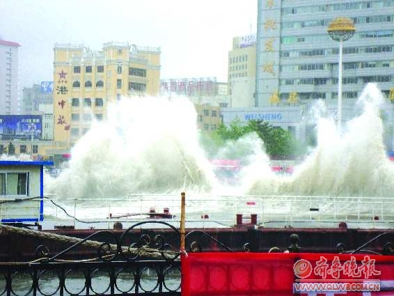 26日上午9时许,威海海港公园海边掀起巨浪。今年第5号热带风暴“米雷”的中心已于26日21时10分在荣成市成山镇沿海登陆,登陆时中心附近最大风力有9级,青岛、烟台、威海等地普降大到暴雨。预计“米雷”将以每小时20公里左右的速度向偏北方向移动,强度缓慢减弱。 本报记者 王帅 实习生 辛先超 摄影报道
