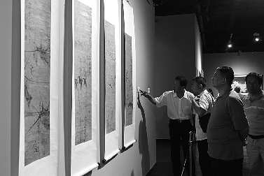 25日上午10时许,由中共东营市委宣传部主办的水墨传承--2011中国国画名家作品展在山东长青美术馆开展。此次展览汇集了郑板桥、于希宁、乍启典等40余位知名画家的120余幅作品。展览将持续16天,7月10日闭展。