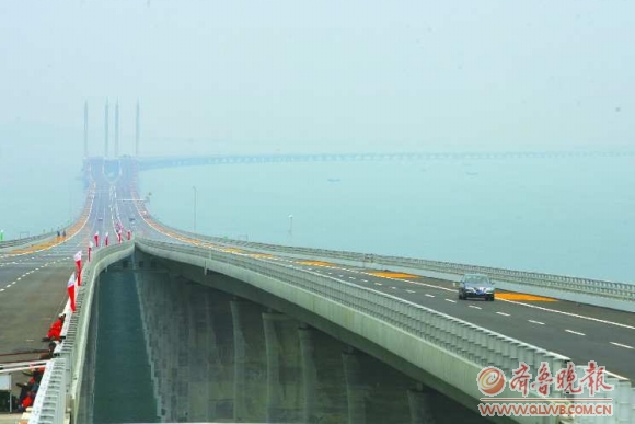 27日,由省市多部门组成的交工验收组通过了对胶州湾大桥的验收,大桥施工达到了优良级水平。 本报记者 杨宁 摄影报道