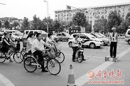 德州交警支队辅警管理办公室副主任史振波告诉记者,在路口管理交通违法行为中,最难的就是非机动车闯红灯,人多量大,特别难管。最近,为了创建省级文明城市,他们在市区十几条主干道的主要路口实行拉绳限行,实实在在地对行人起到警示作用。对于绳子的安全性,史振波解释说,他们根据路口的宽度,选择不同长度的绳子,以适应不同路口的需要。另外,绳子都由辅警看管,一般不会出现安全问题。