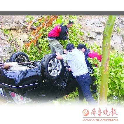 26日中午,由于下雨路面积水多、地形不熟加上速度过快,曹某驾车到成龙线埠柳行上村碑处,拐弯时刹车失灵,连人带车扣翻在水沟里。民警迅速赶到,将被水淹到脖子的曹某救了出来。
