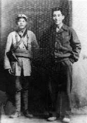 1941年10月的一天,在潍北五区政府所在地西利渔村,父亲正在召集民兵进行整顿,岗哨来报:村北边扎下来一架日本飞机!他带领十几名民兵火速赶至出事点。一面鸣枪一面向飞机围拢过去,飞行员用扳手触响机关炮弹进行反抗,不料被炸伤了手掌。大伙一拥而上俘获了敌飞行员,拉下飞行帽一看,竟是个十几岁的日军!日军连哭带喊挣扎着,因不懂日语不明来历,父亲让一民兵联系驻寿光独立团报告情况,独立团闻报遂派一个骑兵排把小鬼子押走。遵照领导指示,借了两匹骡子,把飞机拖至央子以西弥河边的茅子墩村,交给了独立团修械所的同志,三下五除二不消一个时辰,整架飞机拆的只剩了个铁皮架子,拆下两门机关炮送去战场打鬼子,还真发挥了它的威力。