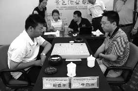 25日,伴随着大赛裁判“2011金立手机杯中国围棋甲级联赛山东景芝酒业队对广西华蓝队景芝酒业专场现在开始”一声令下,三方角逐立即展开,小将五段崔灿刚刚开局就遭遇打劫,一直苦战,中途离场休息十分钟,最后无力转机。