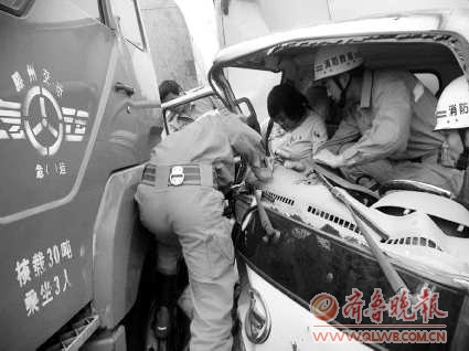 消防官兵到达后,发现事故现场到处是碎玻璃和车辆零部件,其中面包车驾驶室已经变形,一名年约30岁左右的妇女困在驾驶室内痛苦呻吟。