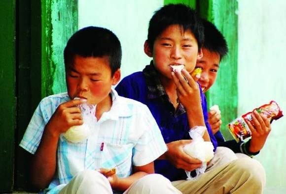 27日中午,在卧虎联小,学生正在吃午饭。本报刊登《40余名山里娃翻山上学堂》消息后,引起市民关注。据梁邱镇政府一工作人员介绍,镇里计划逐步将北王家庄村村民搬迁下山,以解决孩子上学难的问题。当记者将这一消息告诉孩子们时,他们很高兴。 记者 刘海蒙 张斌 摄