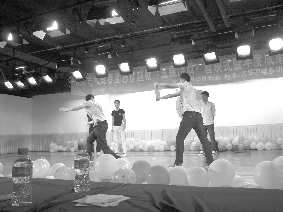 近日,鲁大电视青春励志穿越剧《五维游戏》首映礼暨年度成果展,在五餐四楼会议室举行,鲁大电视台的主要节目主持人和DV剧的主要演员为现场观众献上了精彩的才艺表演。本报记者 孙淑玉 摄