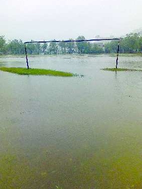 作品描述:“米雷”把我们学校的绿茵场变成了“水球场”,真想跳进去玩一场水球。