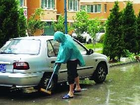 作品描述:雨下得好大啊,别的不能干,干脆省点钱刷刷车吧。