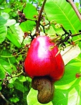 过年经常吃腰果,但您知道腰果是怎么长出来的吗?上部分那个红红的,像个梨似的是腰果树的果实。下面挂着的才是我们平时吃到的腰果。种子长在果实外面,是不是很有趣?