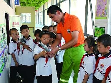 6月27日,东营市公安消防支队战士到东营区科达小学为师生上了一堂消防安全课。消防战士通过宣传图片、多媒体投影、消防器材等给师生们讲解火灾的危害、自救逃生等基本消防常识。 本报通讯员 宋国倩 李江涛 本报记者 李沙娜 摄影报道