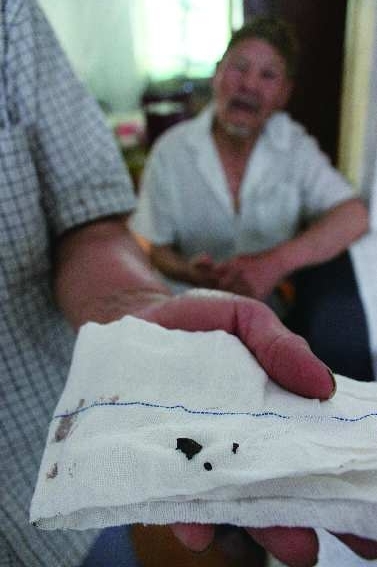 将近30度的高温,牛同道的头上却包裹着一顶帽子,这是战斗留给他的纪念。“抗美援朝的时候,头上被打进了一片子弹皮,由于正好压迫着神经,当时怕危险就没取出来。”牛同道脑袋里的弹皮,2010年才动手术取了出来,他让老伴儿找来一个布包,“这个小玩意儿,在我脑袋里待了60多年,自己从头顶移动到了脑袋后面。”布包里是一块拇指肚大小的铁片,锈迹斑斑,医生取出来之后牛同道就仔细地收藏了起来,“留个纪念,老哥们儿了!”