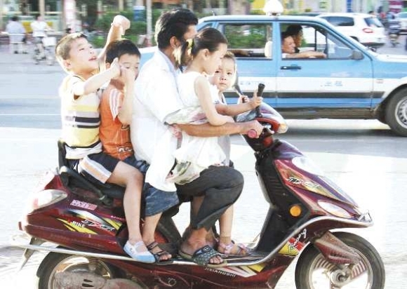 6月26日下午6点,兴华路运河桥附近,一位市民骑电动车载着四名小孩,看着让人心惊。