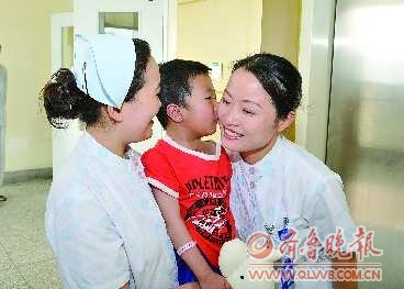 刚到福利院时,由于长期患有先心病,加之严重营养不良,6岁的孩子还不到30斤,而且随时会有生命危险。济南市慈善总会和省千佛山医院得知这一消息后,决定联合救治这个可怜的孩子。5月30日,孩子在省千佛山医院做了第一期手术。术后孩子恢复得很好。医院的护理人员说,孩子喜欢醒目的红色,今天出院,特意给他买了件红色T恤穿上。随后,医院将孩子送回济南市儿童福利院。一个月前,他刚到福利院时,经常吵着要见自己的妈妈,而现在他喜欢上了医院,喜欢上了福利院。在儿童福利院,孩子进入一个爱心模拟家庭,家里有妈妈、爸爸,还有4个兄弟姐妹。医院的护理人员介绍说,孩子现在可以自己洗脸、吃饭、上厕所,医院同时将出院后孩子的注意事项打印出来交给了福利院的护理人员。