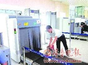 记者看到,X光行李扫描机宽80厘米,高1米左右,一般行李都能顺利通过,从进到出只要三四秒钟。即使考虑到其它因素,一名乘客耗时也不会超过1分钟。