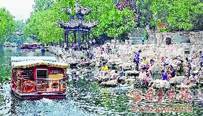 29日午后,护城河畔白石泉边围坐着前来亲泉的游人。夏日时节,在泉边小憩,掬一捧甘甜的泉水,真可谓清凉。 本报记者 邱志强 摄