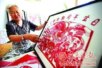 家住王官庄小区的栾月英老人是一位退休军人,为迎接建党90周年,老人从半年前就开始创作剪纸作品。