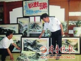 日前,胶州市云溪街道计生协会理事兼人口文化艺术顾问、诸城市技工学校教师、中国国际书画研究院理事、高级画师鞠光泉来到胶州,对“活力人口、效率计生”人口文化景观进行指导,展示了他的《山河尽朝晖》等9幅在画的反面绘制却正面观看的神奇绝技国画,献礼建党90周年。这些画画在透明材质上被称为透明材质国画。 金伟娜 隋长悉 摄影报道