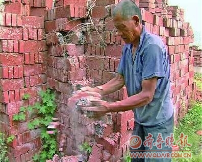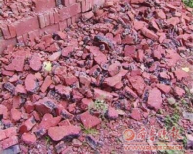 记者注意到,这些砖从外形看和正常的砖并没有特别不同之处,但用手一捏,或者两块砖稍微一碰,就能碎成小块。张华元称,因为砖块质量不过关,施工队不得不停止施工。