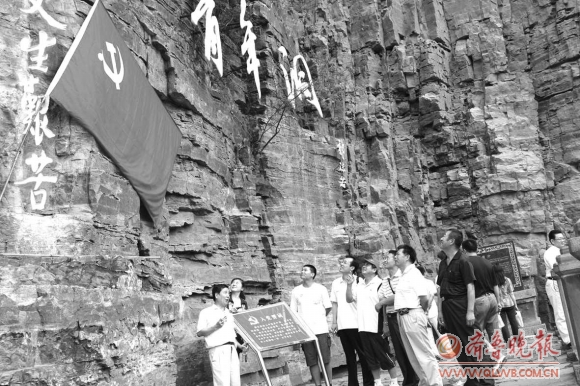 在建党九十周年之际,泰安二中党委组织近百名党员奔赴河南林州市,参观考察了号称“世界八大奇迹之一”的“人工天河”———红旗渠,使广大党员感受艰苦创业的革命精神。图为党员在青年洞参观。