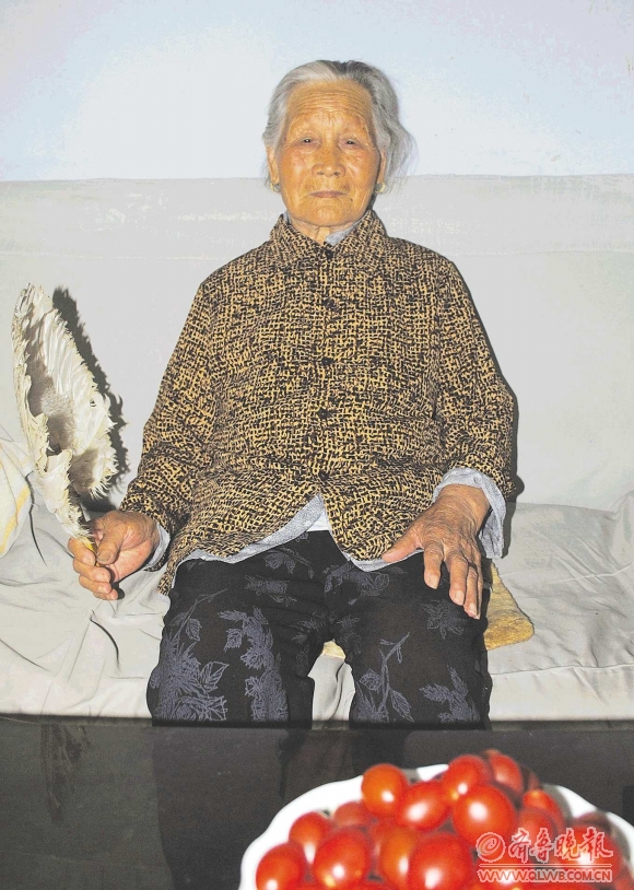 29日上午,记者来到张金英老人位于南关村的家中,她正在电视机前坐着。虽已90岁高龄,老人精神依然矍铄,迈着缠过的小脚,走起路来还很稳当。