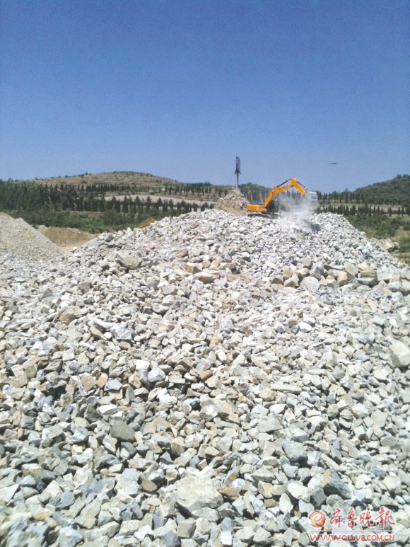 6月13日中午,记者来到位于粥店街道办事处小辛庄村的凤凰台隧道,看到隧道东侧的一大片空地上堆满了石头,大大小小垒成了好几座小山头,有两台挖掘机正在作业,不停地将个头稍大的石头挖出来堆在一边,不时还有卡车驶来卸石头,泛起一阵尘土。记者爬上一个斜坡,踩着一层厚厚的土走到一台挖掘机跟前,见到了正在此处打工的挖掘机司机张岱东。
