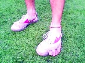 作品描述:一位同学踢足球时,整只脚丫子都快露出来了,可想足球赛之惨烈。