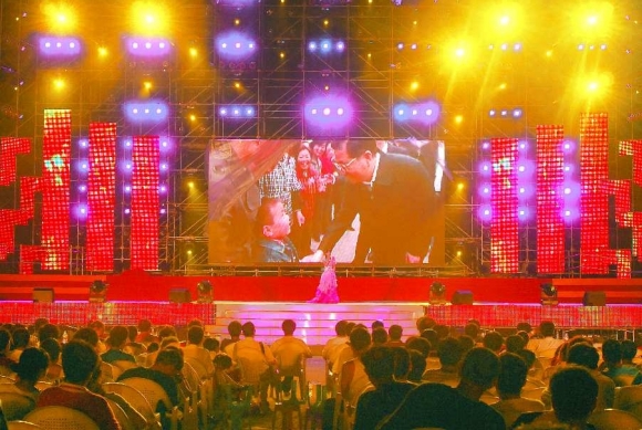 6月29日下午,在新世纪广场北侧,庆祝中国共产党成立90周年暨2011年黄河口文化艺术节开幕式舞台已经搭建完毕。据了解,本次活动由东营市委宣传部主办,艺术节将从6月30日持续到7月6日。 本报记者 任小杰 摄影报道
