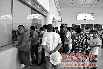 与售票机前冷清的情况相比,二楼北侧的人工售票窗口前,不少旅客正排队购买车票,由于只开了4个售票窗口,各个窗口前显得有些拥挤。在售票机前服务旅客的志愿者李孟介绍,用售票机购买车票的旅客还是比较少,有时人工售票窗口前都排起长队了,也很少有人到售票机来买。
