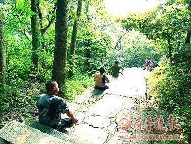 时间:2011年6月26日地点:庐山三宝树下摄影器材:通用X5自述:从石门涧返回途中,三个男子汉,大汗淋漓,汗流浃背,趁势而坐,自成一排,一起排汗。点评:累了,在哪都是歇!