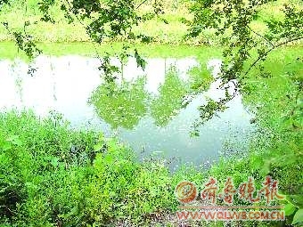 5日下午,记者赶到牛堡乡,发现少年溺水小河有七八米宽,河边杂草丛生,河里长着青苔,河水显得比较浑浊,河岸边坡度很大。