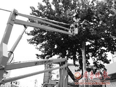 7月5日中午,在市中区振兴路与龙头路交叉口,几位工作人员正在安装电子监控设备。据交警部门讲,枣庄市各个红绿灯路口将陆续安装电子眼,以方便更好地疏导交通,保障道路畅通。