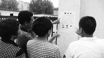 5日下午,在几位村民的带领下,记者再次来到大新庄村委大院,村委大院门口张贴着通缉令,几名群众正站在通缉令前观看议论着。
