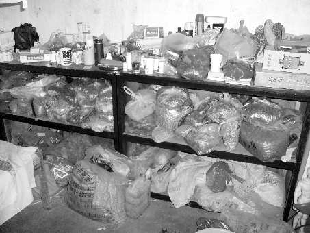 在不足十平方米的房间里,摆放着一张脏兮兮的床,用于患者针灸休息,生活用品和各种中药材杂乱无章地堆放在破旧肮脏的柜子上,没包装完的中草药散放在地上的几个塑料盆里……
