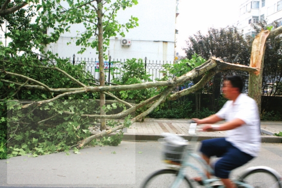 4日,在潍坊市潍州路北宫街路口北侧,一棵直径近半米的法桐树,树冠被劈下一半来。据附近商铺的人员介绍,约14点50左右,从马路东侧的工厂内开出一辆大货车,向南拐弯时,货车的车厢碰倒了法桐树的树枝,法桐树一半的树冠都被劈了下来,当时还发出了很大的声音,所幸无人受伤。