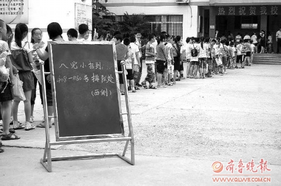 7月5日,牡丹区二十二中西校区门口排满了前来报名的学生和家长,据悉,今年二十二中共招初一新生3000余名,这些新生以原有小学为单位,分别于5日、6日前来报到。报到时,新生需携带户口本、牡丹区义务教育入学通知书(初中)、本人近期证件照2张前去报名。新生均衡编班测试将于8月26日在二十二中校本部举行。 本报见习记者 邓兴宇 摄影报道