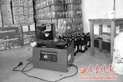 据悉,警方在制假现场查获各类假冒百威、喜力、青岛纯生、崂山等品牌啤酒,扳倒井、金六福、黄河龙、五粮液、黄金酒、白金酒、生活帮等各类白酒以及张裕解百纳葡萄酒等各种红酒、洋酒及雪碧等,共计3000余箱。各类包装物、商标标识1万余套以及灌装、封口、打码设备一宗。制假数量巨大,涉及种类繁多,涉案价值高达50余万元。