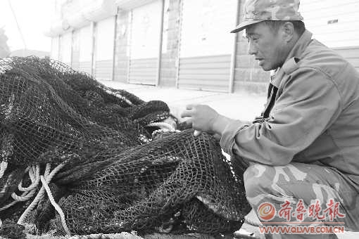 7日17时,大钦岛乡小浩村养殖户老高正要把晒好的鱼网拉回家。说起自家鱼的死亡,他认为都是溢油害的。